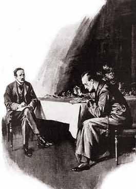 “华生,波尔洛克是个假名,它不过是一个人的身分符号而已;可是在它背后却是一个诡计多端、难以捉摸的人物。在前一封信里,他直言不讳地告诉我,这不是他的名字,并且公然向我指出,要想在这大都会的茫茫人海中去追踪他是徒劳无益的。波尔洛克之所以重要,并不在于他本身,而在于他所结交的那个大人物。你想想看,一条鲭鱼和一条鲨鱼,一只豺狼和一头狮子——总之,一个本身虽不是了不起的东西一旦和一个凶恶的怪物携起手来,那会怎么样呢?那怪物不仅凶恶,而且阴险至极。华生,据我看来,他就是这样一个怪物,你听说过有个莫里亚蒂教授吗?”